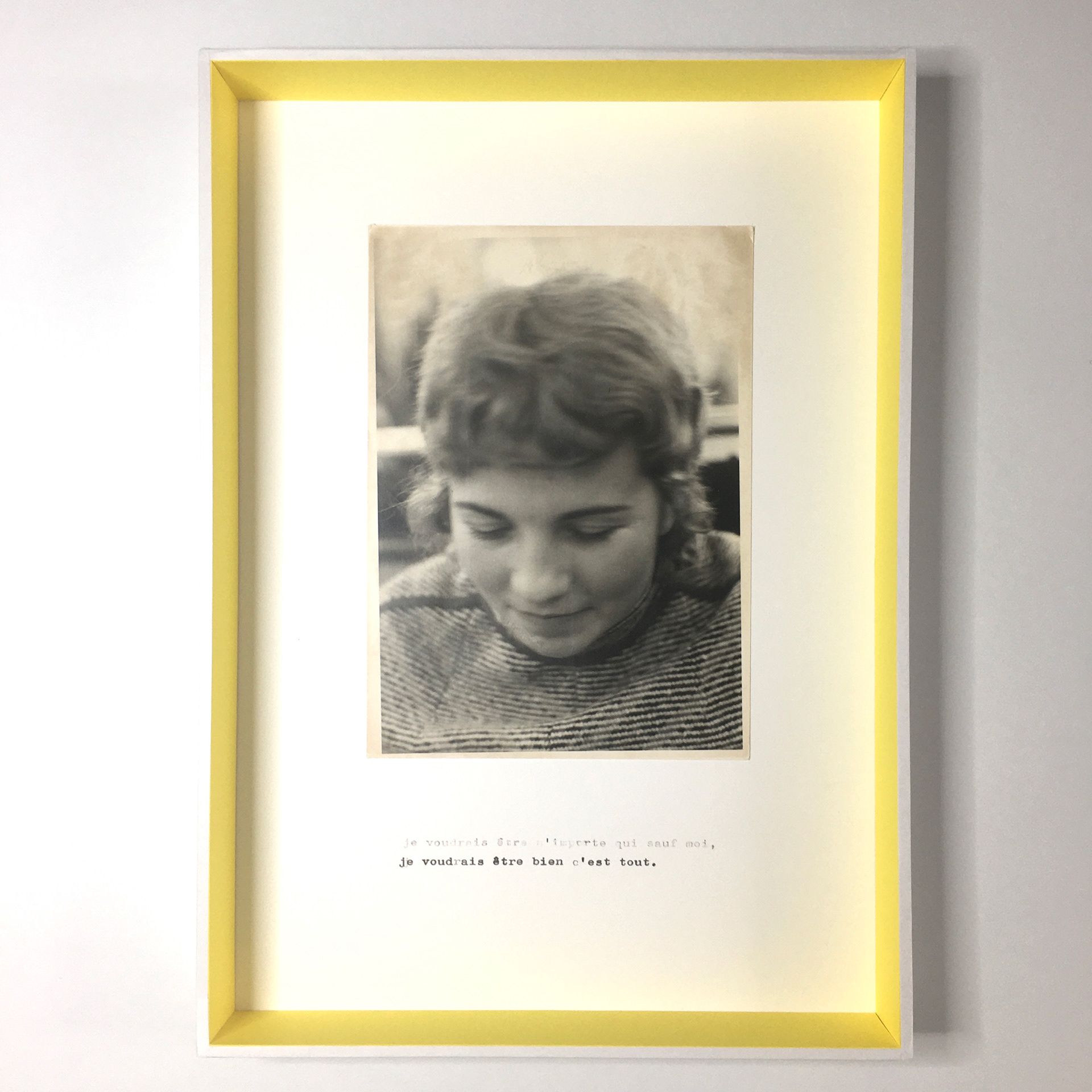 L'adulte - Format : 30 x 40 x 5 cm - Techniques : Photomaton original, reproduction d'une photo d'identité, latex, papier, carton.