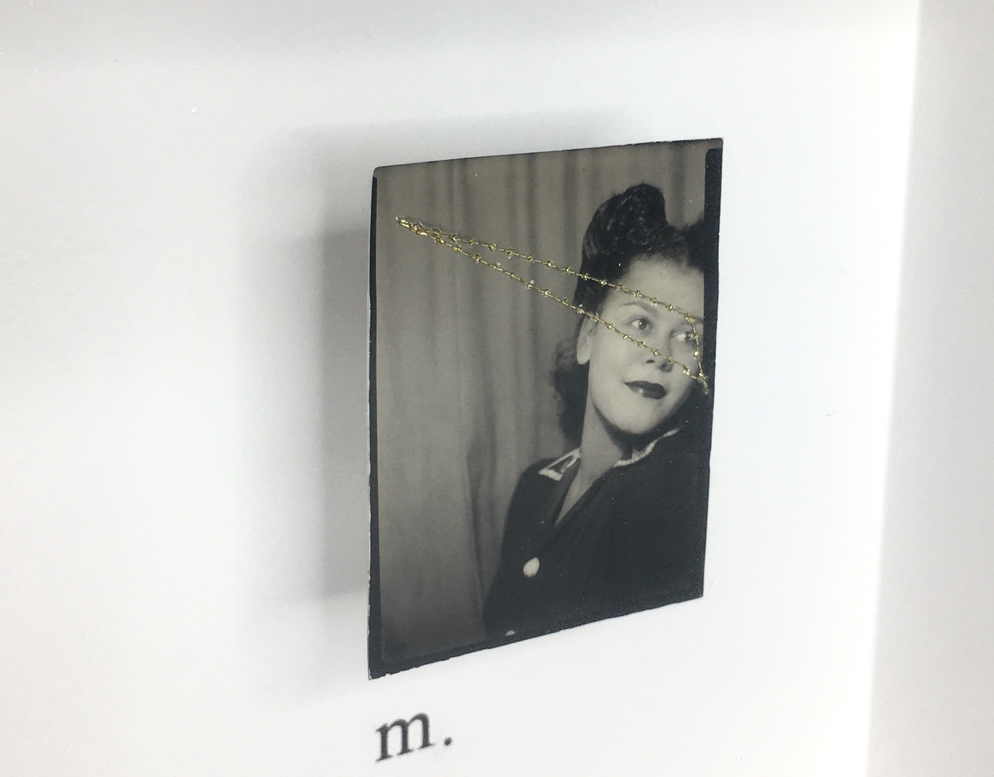 Les dossiers - Format : 22x22x14 cm - Techniques : Photomaton original, papier, peinture, Letraset, boîte en médium peinte.