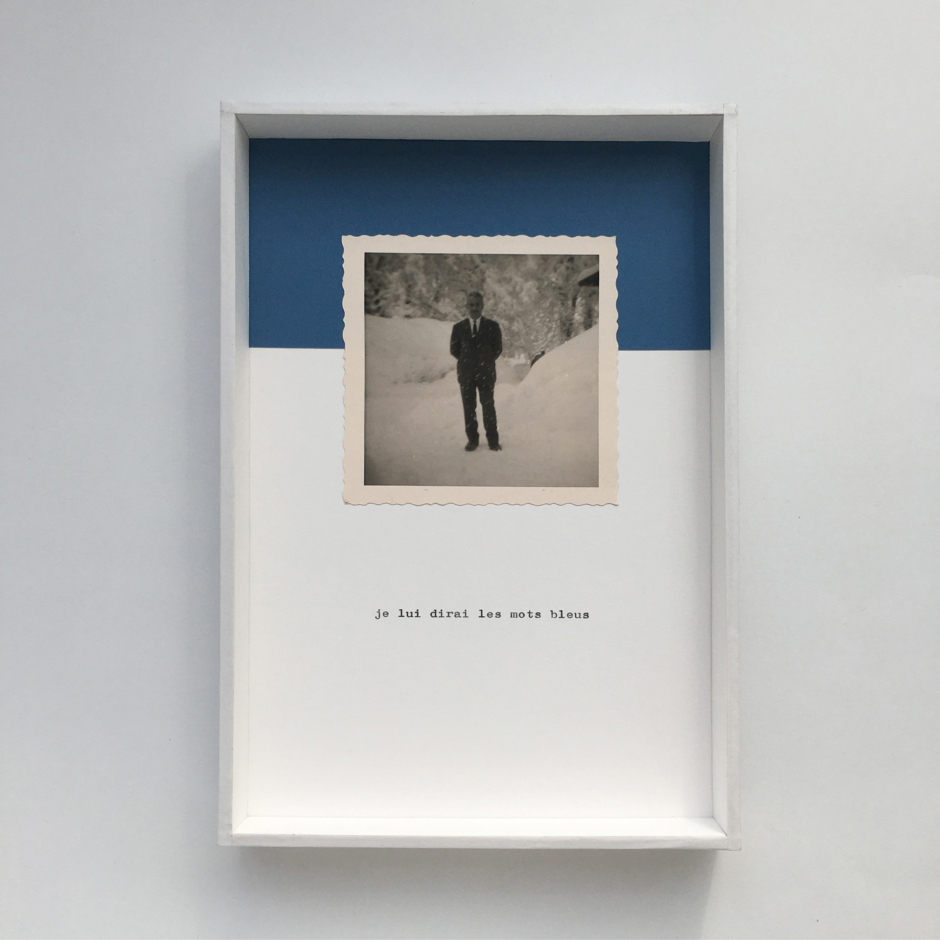 Les mots bleus - Formats : 15,5 x 23 x 3 cm - Techniques : photos originales, papier, carton.