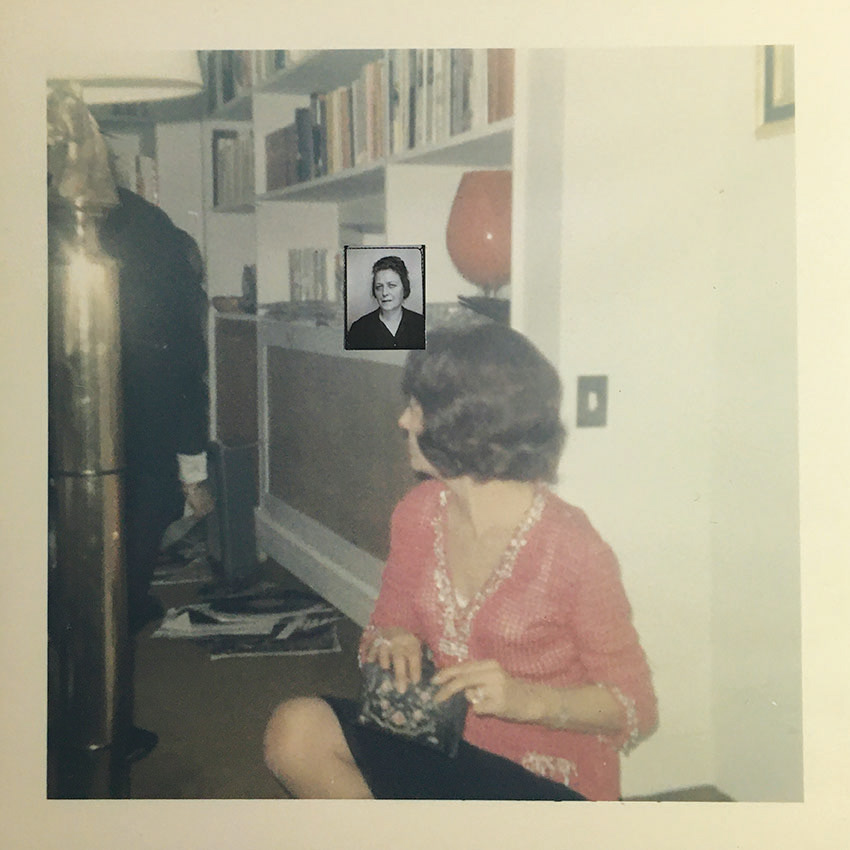 Souvenir de l'ennui. Format : 40 x 40 x 2 cm. Techniques : Reproduction d'une photographie, Photomaton original, fil.