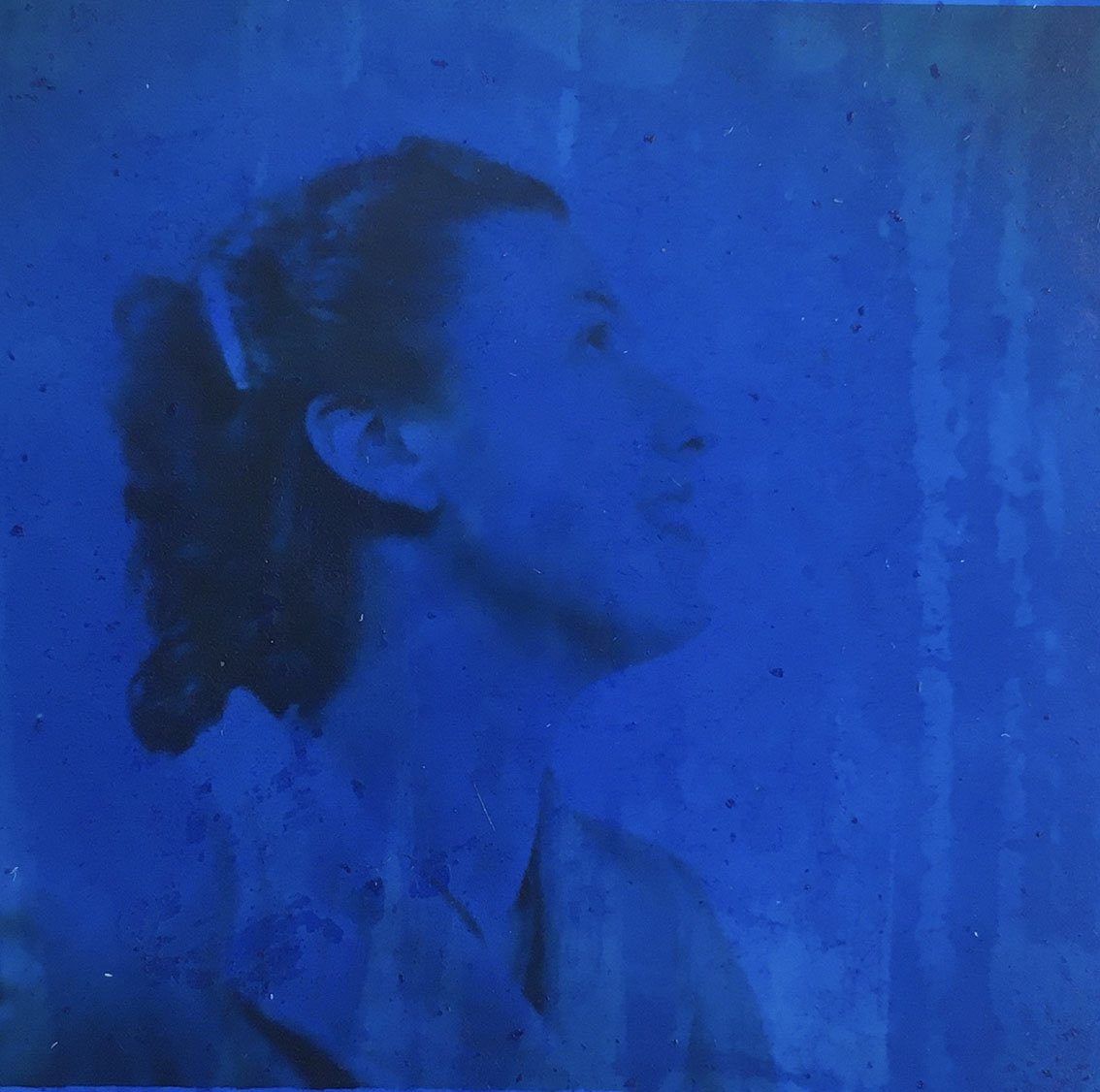 Cette série montre des visages, des lieux. Ces photos d'anonymes sont recouvertes d'encre bleue. Le temps passe. Cette couleur évoque la mémoire qui s'altère, l'effacement. 2022