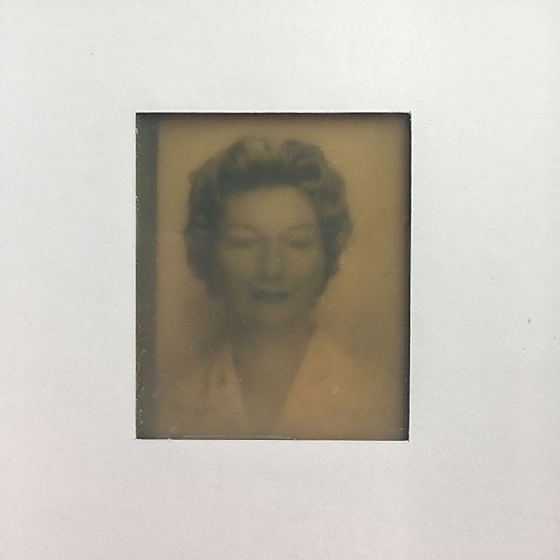 Troublée,. Format : 20 x 15 x 3 cm. Techniques : Photomaton originaux, latex, papier, carton.